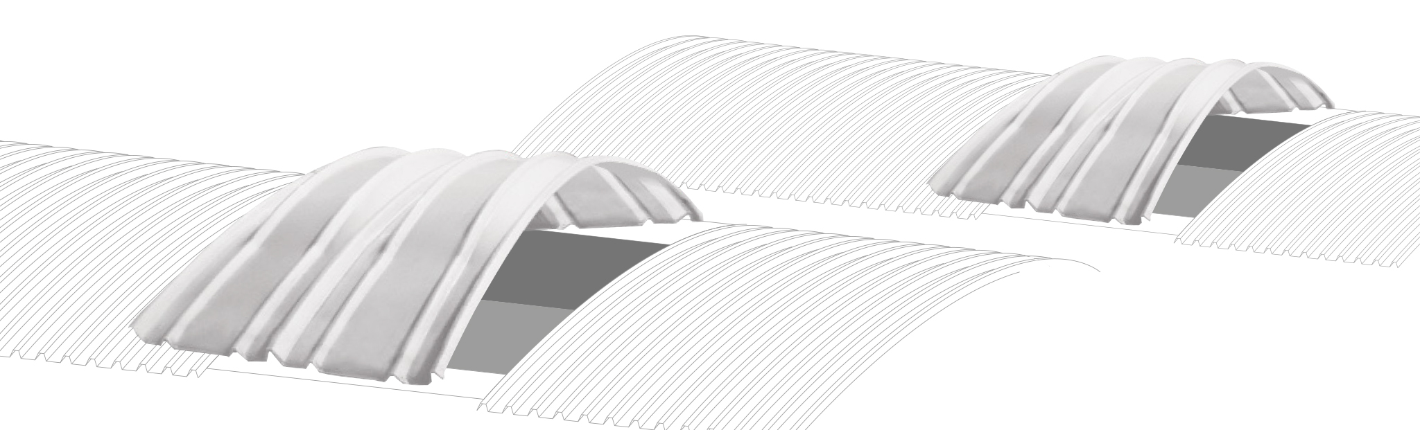 adatto a qualsiasi tipologia di pannello sandwich o lastra di copertura. Realizzato in policarbonato alveolare in vari spessori. La particolare conformazione centrale alta permette un’elevata portata alla neve. Certificato con resistenza a 1200 Joule, permette inoltre l’inserimento di sistemi di apertura per la ventilazione giornaliera. Accoppiabile in continuo per varie dimensioni di lunghezza.