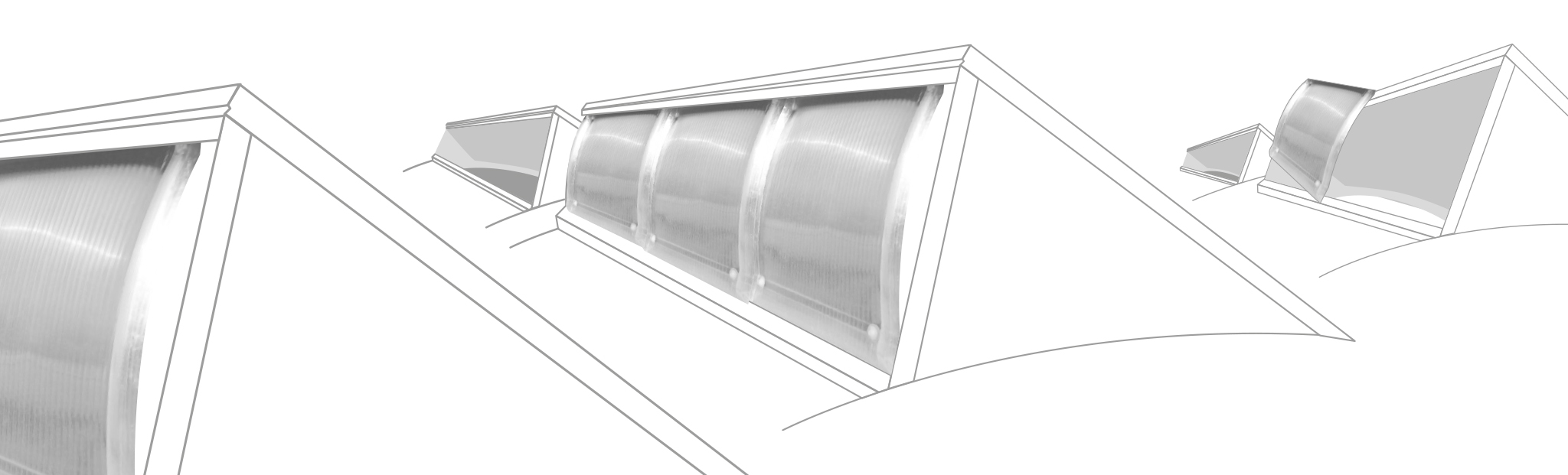 in policarbonato alveolare spessore 16/20 mm, realizzato attraverso speciale sistema di termoformatura, protezione UV contro ingiallimento per coestrusione, classe di reazione al fuoco B-sl-dO, corredato di supporto per aggancio a moduli prefabbricati. La particolare conformazione garantisce un’alta resistenza ai carichi dovuti al vento, alta resistenza agli urti e assenza totale di ponti termici.